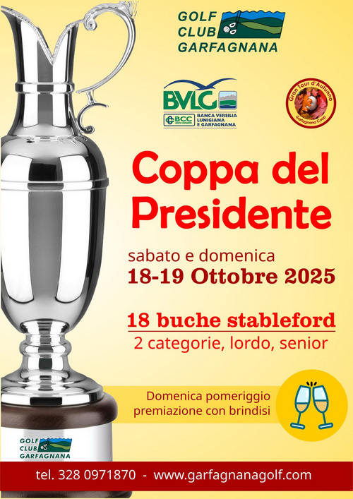 Coppa del Presidente Gara circuito ‘Garfagnana Coop Gran Tour’ 18 buche Stableford, 2 categorie, lordo, senior + Aggiungi a Google Calendar + iCal / Outlook export Data 18 - 19 Ott 2025 Luogo Garfagnana Golf Club Categoria Garfagnana Coop Gran Tour Condividi questo evento